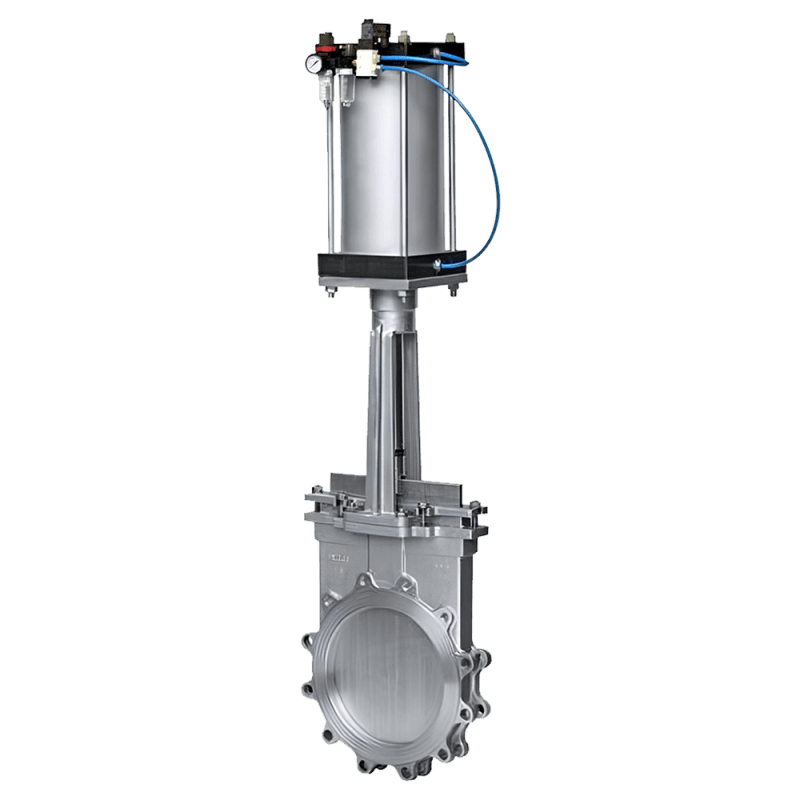 The Knife Gate Valve is a durable industrial valve designed to handle slurry, viscous fluids, and solids-laden media, making it ideal for wastewater, mining, chemical, and pulp and paper industries. Its sharp blade ensures smooth flow control with minimal pressure drop, even in tough conditions. MVS Valve offers high-performance Knife Gate Valves with bi-directional shut-off and strong sealing, built to international standards for reliability and long service life. With growing demand for automation, our Pneumatic Knife Gate Valves enable fast, remote operation in applications where manual control is unsafe or impractical, ensuring zero leakage, low maintenance, and efficient performance across critical processes.