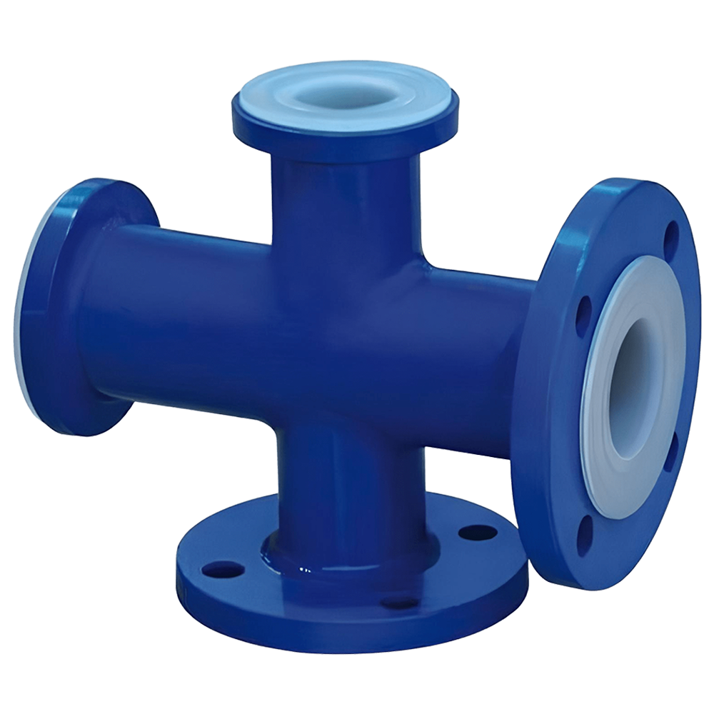 PTFE Lined Unequal Cross fittings by MVS Valves are specifically engineered to handle aggressive chemicals and high-purity fluids with unmatched reliability and structural strength. These fittings offer a dependable solution for multi-directional flow control where the outlet dimensions differ from the main line, making them ideal for complex piping systems. Designed to ensure leak-free service, each unit features a high-performance PTFE or PFA lining that resists corrosive attack while maintaining high mechanical stability across varying pressures and temperatures. These unequal crosses are available in sizes ranging from ½″ to 24″ (DN 15–600) and are pressure-rated to ANSI Class 150/300 or PN 10–25. Capable of operating between –40 °C and +230 °C, they are fully vacuum-rated and meet all relevant global standards including ASTM F1545, ASME B16.9, and ISO specifications.
